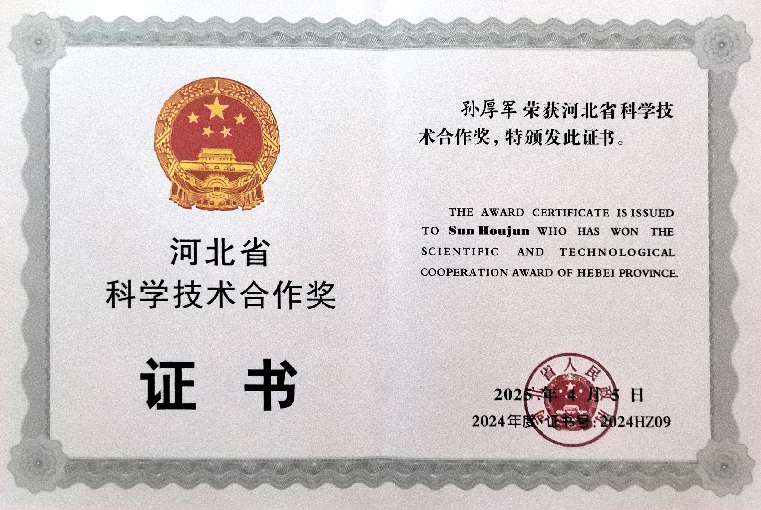 4月21日,河北省科学技术奖励大会在石家庄市召开,必威西汉姆联微波与太赫兹创新研究中心首席专家孙厚军教授荣获“河北省科学技术合作奖”。